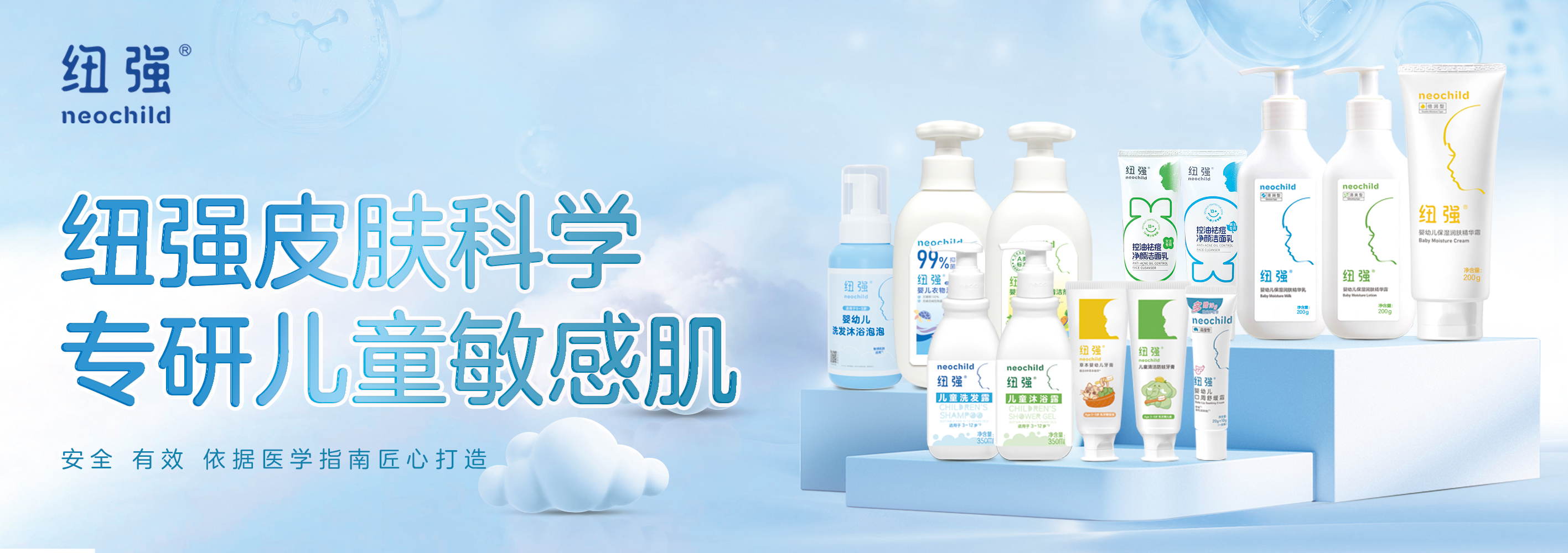 润肤剂:纽强婴幼儿保湿润肤精华露(清爽型);200g/盒、15g/盒;轻薄水润质地,采用更轻薄的配方体系,快速渗透肌肤保湿舒缓,清爽愉悦无负担。适用于夏季清爽保湿、或偏爱轻薄肤感的人群。(适用于0岁+及普通人群敏感肌)洗发沐浴:纽强儿童洗发露 350ml/瓶、30ml/瓶;弱酸性、无泪配方,温和清洁,呵护敏感肌,改善头皮油扁塌,适用于3-12岁儿童。